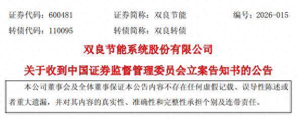 2月27日晚间,光伏硅片主要厂商双良节能(600481)公告称,公司2月27日收到中国证监会下发的《立案告知书》。因公司涉嫌信息披露误导性陈述等违法违规行为,根据《中华人民共和国证券法》《中华人民共和国行政处罚法》等法律法规,决定对公司立案。