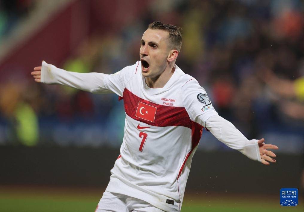 3月31日,土耳其队球员阿克蒂尔克奥卢在进球后庆祝。
