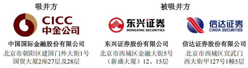 东兴、信达的股东,将成为中金股东。