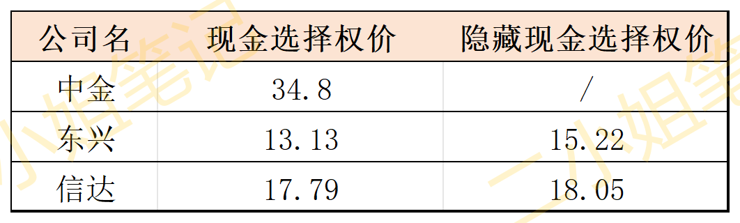 中金的现金选择权价是34.8元,