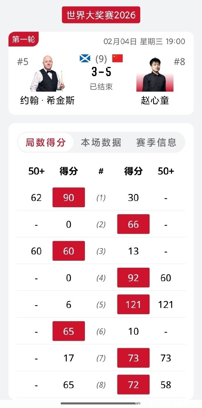 第一轮第二个比赛日,赵心童、斯佳辉、袁思俊、庞俊旭4名中国选手出战,其中三人的对手是世锦赛冠军,中国斯诺克军团继续保持非常强劲的态势。第一个出场的斯佳辉,以5-3淘汰排名赛3冠王加里威-尔逊。
