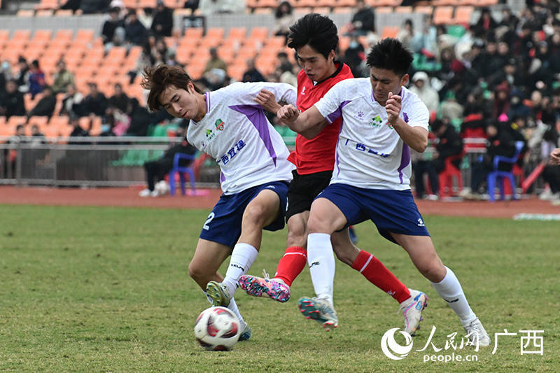 广西“县超”各赛区将本土文化深度融入赛事全流程,同步推出非遗展演、文化演艺、夜间文旅消费活动等文商体旅融合的特色活动。球赛开场前,球队间交换本地特产成为赛前标配,来自田间地头的农副产品、独具地域特色的非遗美食,让足球赛场成为地域文化传播的重要窗口。