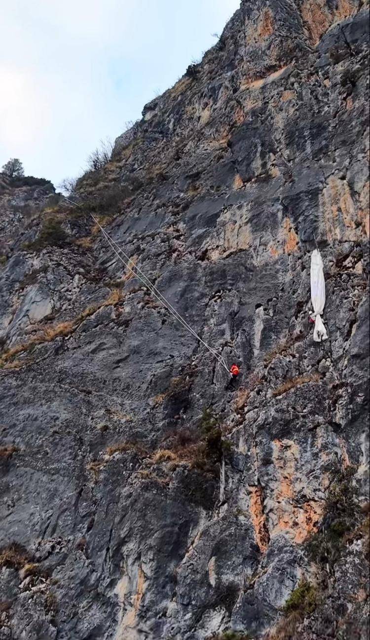 据3月15日昆明警方官微发布的消息,宗女士当时因气流影响才遇险,雪山派出所接到报警后,迅速启动应急救援预案,抽调精干警力联合消防救援人员以及熟悉地形的工作人员、护林员等组成救援队伍,携带专业救援器材赶赴现场开展救援。救援人员抵达现场后对周围环境进行全面细致勘察,发现被困的宗女士位于“望天崖”陡峭崖壁半山腰的岩石上,该位置山体坡度接近垂直,岩壁湿滑、杂草丛生,无正常路径可达,救援难度极大。